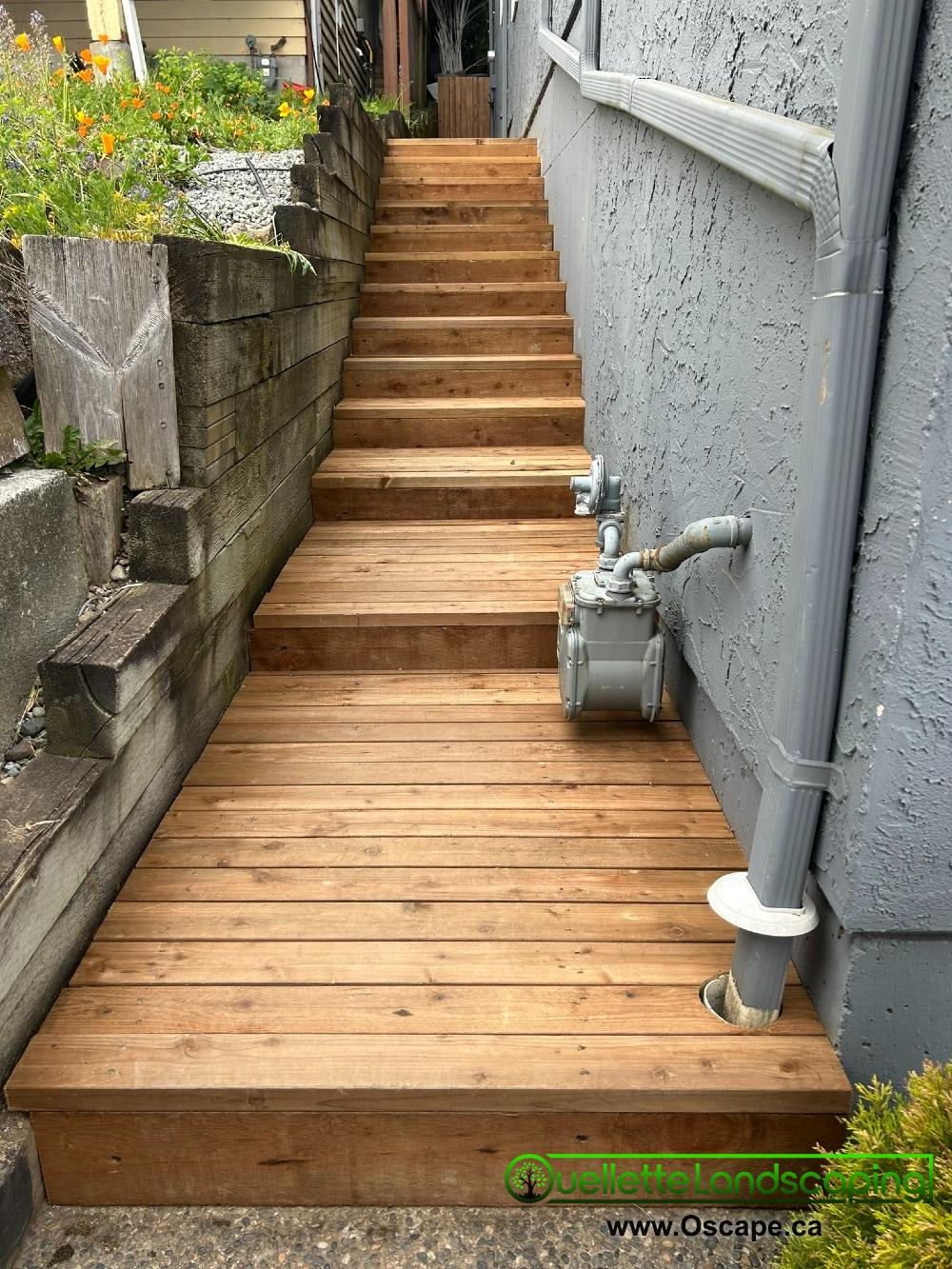 Outdoor wood stairs construction project in Surrey